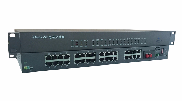 ZMUX-32是一款電話光端機,主要完成電話、4線音頻(E&M)、RS232、網絡等多業務接入,通過復用到1路光信號傳輸,實現多業務信號點對點通信功能。